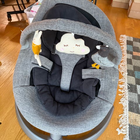 Selger nå vår Nuna Leaf vippestol/gyngestol da den ikke blir brukt lenger. Lekebøylen er dessverre ødelagt