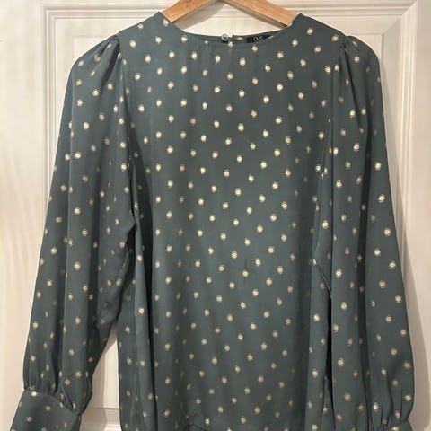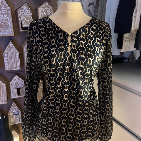 En gullfarget skjorte som utstråler eleganse og stil. Passer like godt til alle årstider og ser fin ut til alt. Tynnt stoff som ikke krøller og gir en en lett og komfortabel følelse. Blusen er litt stor i størrelsen, så det anbefales å gå ned en størrelse for en optimal passform. Perfekt for både hverdagsbruk og spesielle anledninger. Du kan snurpe den foran som på modellbildene eller la den henge rett ned eller putte ned i buksen siden den er tynn. Litt stor og oversize.