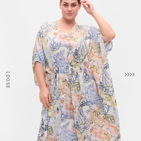 Lekker kort offwhite kjole str 48. Kjolen er foret. Stoffet er tungt og av god kvalitet. Fin fasong som sitter fint. Kun brukt to ganger. Selges fordi den er blitt for liten.
