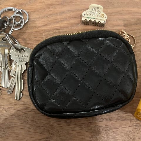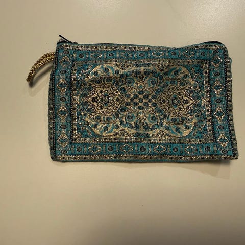 Somewhere to put that Christmas pocket money, this coin purse is designed with a beaded car on a velvet backdrop. Finished in a crescent profile with a zip fastening.
