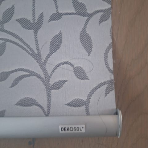 Pen lystett rullegardin med mønster i grå farge.