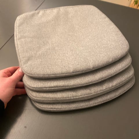 Jeg selger 5 stolputer som jeg har til overs. De er såvidt brukt og fremstår som nye. De passer til spisestuestoler både som dekorasjon, beskyttelse for søl og for mykhet.