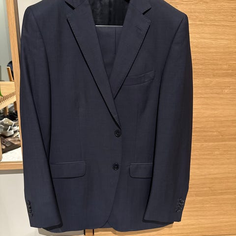 Grå. Behagelig med litt stretch. Jakke er 50. Bukse er 41.