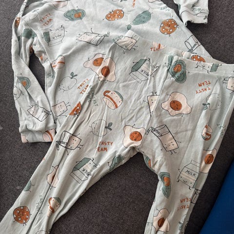 Kortermet pysjamas i strl 92 fra Lindex selges for kroner 80.