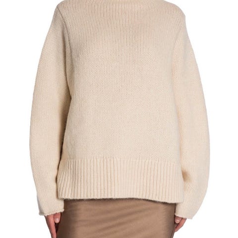 Strikkegenser Wera Gomes i fargen creme selges. 38% ull og 27% alpakka.