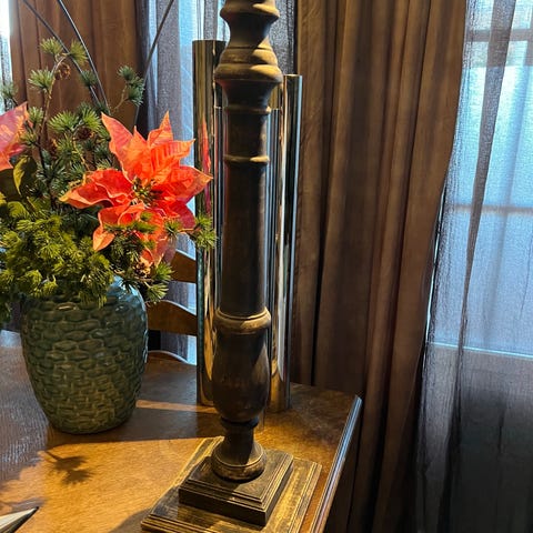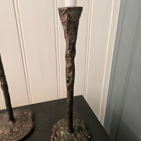 Lysestake i grått treverk og metall