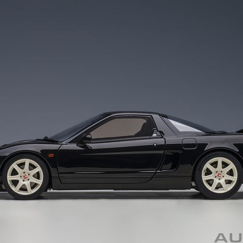 Veldig pen Honda Civic modellbil. Kult med motoren ved siden av på en liten pall.