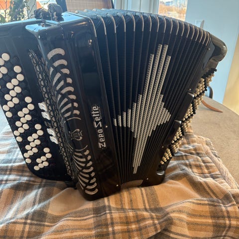 Zero Zette castelfidaro fra 1984 selges da det ikke lenge er i bruk, svensk system, 4 kori, 120 basser. Pent brukt og pent behandlet. Oppbevart i kofferten. Må hentes i Larvik. Sendes ikke, å bruker ikke Helthjem.