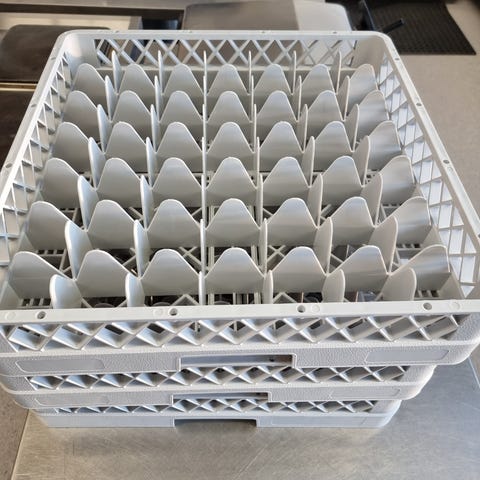 Designet spesielt for oppvask av kopper og glass. Passer til alle oppvaskmaskiner med standardmål i profesjonelle kjøkken.