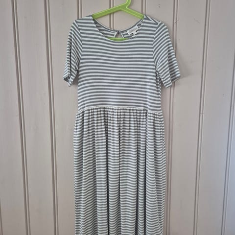 Knapt brukt turkis sommerkjole fra Pop. Har knapper i ryggen, lommer i begge sider og snor som kan strammes inn i livet.