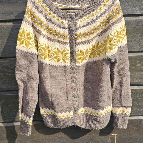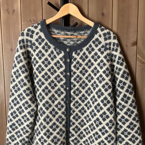 Søkeord: nancy kofte, håndstrikket kofte, peer gynt, norsk ull, kofte dame M, rundfelling, tinnknapper, tradisjonsstrikk, ulljakke dame, strikket jakke, kofte ny, nancy strikk