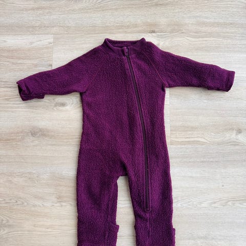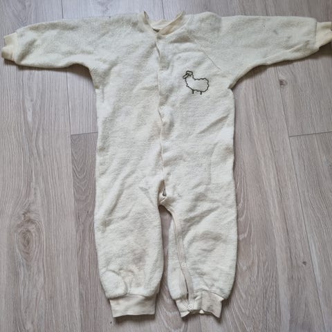 Er egentlig en str 98 som har blitt krympet, men jeg brukte den når barnet var mellom 12-18 mnd som ulldress i vogna i barnehagen, og gjorde nytten sin.