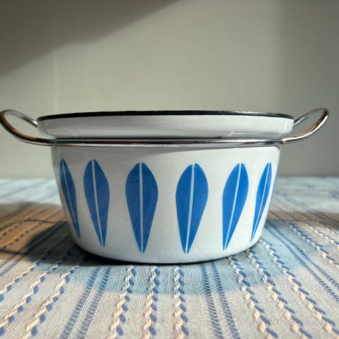 Hel og fin, kun et sår i emaljen helt øverst i kjelen
