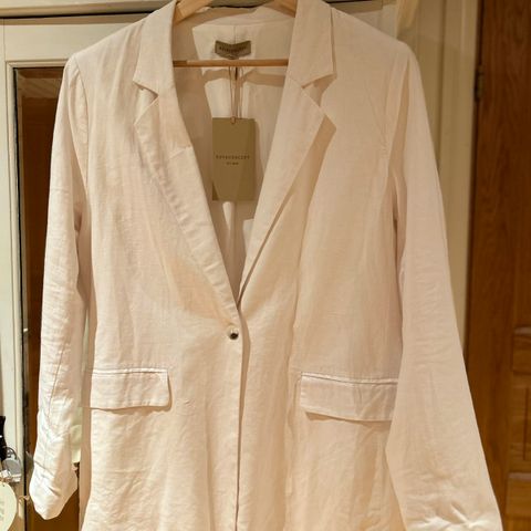 Meget pen dobbeltknappet dressjakke. Ingen skader. Tysk produsert, lett og fin kvalitet. Materialet er rayon, polyester og ull.
