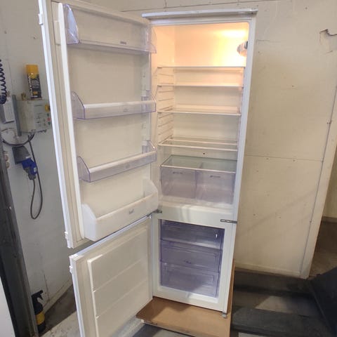 Velfungerende, brukt kjøleskap, noen merker og litt misfarget på fasaden. Vasket og klar til bruk.