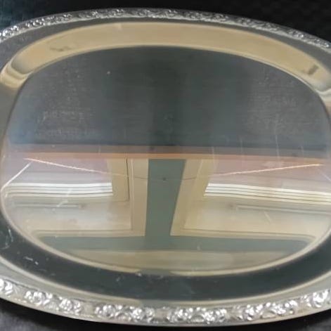 Serveringsfat i metall med små riper.