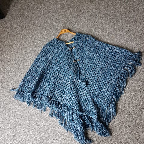 Heklet Poncho, meget pent handarbeid.