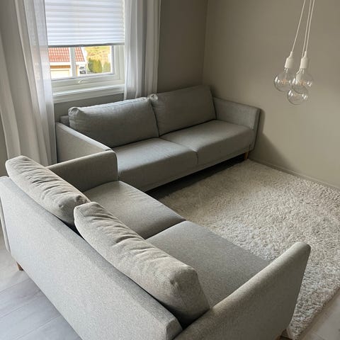 Byttes ut til en mindre sofa pga lite plass i stuen på hytta.
