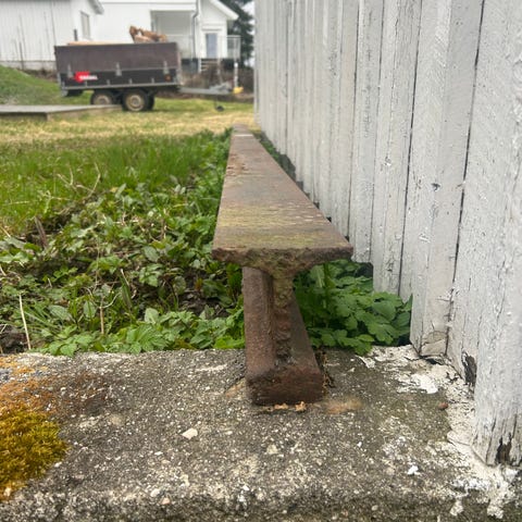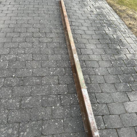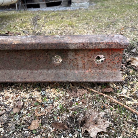Ca 85 meter jernbaneskinner. Str ca høyde 10cm bredde skinnefot 9 cm. Bredde skinnehode snaut 5 cm. Noen skinner har betongrester på seg. De lengste skinnene er 7,5 meter. Rette skinner