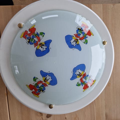 Disney-lampe i metall med glasskjerm. Lysbryter på ledningen.