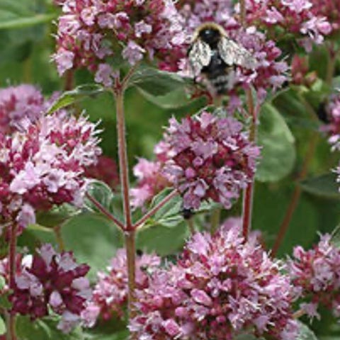 Selger små tuer av bergmynte. Dekorativ plante elsket av bier og humler! Sprer seg lett og blir raskt en stor tue, så anbefaler å ha den i krukke eller et kar. Blomstring nå i juli i år.