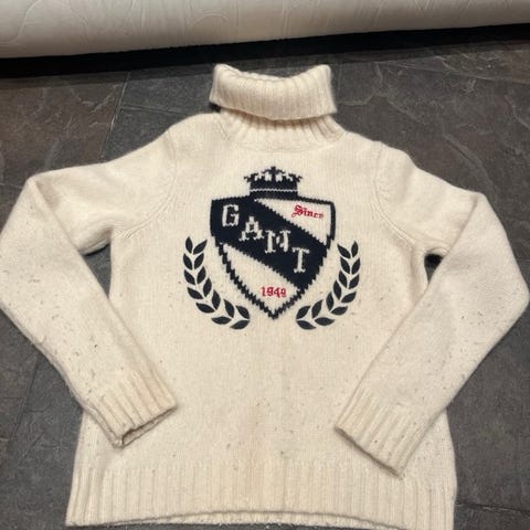 Selger denne kule halfzipen fra Gant i str S i 100% ull for den brukes for lite. Litt trangere i halsen når den er zippet helt opp, så vil si den passer en XS-S.