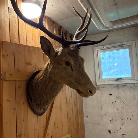 Skjønt dådyr hode som er brukt som dekorasjon på barnerom.