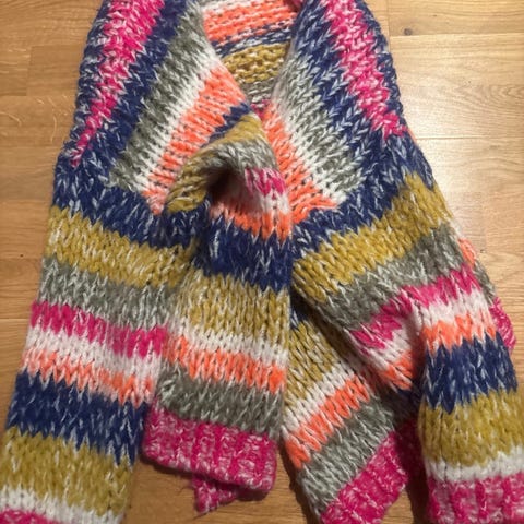 Selges for 1/2 pris av kostpris garn som er 1200kr Strikket med dobbel tråd.