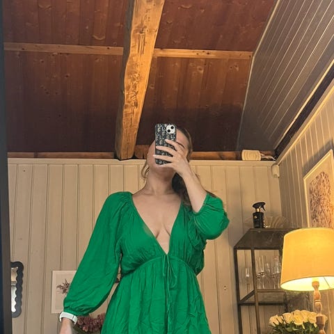 Grønn floyd penkjole. Lite brukt. Ikke laget av det, men ligner en "silke" eller "sateng" kjole. God tilstand.