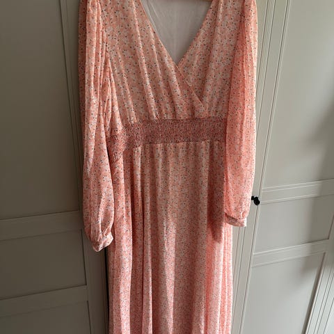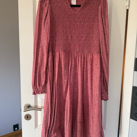 Nydelig rosafarget kjole med hvite prikker fra floyd i str xs. Kun brukt et par ganger i selskap.