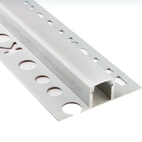 Aluminiumsprofil for montering i gips. Skrues på plass og sparkles jevn med gipsen slik at kun dekselet blir synlig.