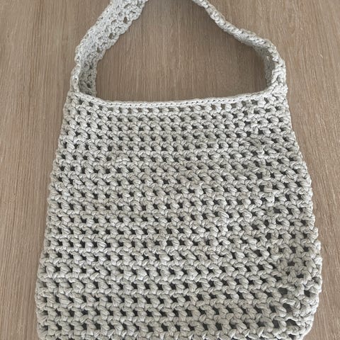 Unik, håndlaget heklet veske i grå farge – perfekt til sommerbruk!