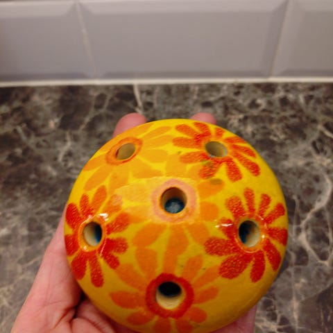 Diameter ca 9cm og høyde 6,5cm. Ingen skader og lite slitasje.