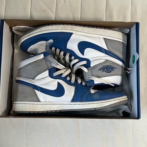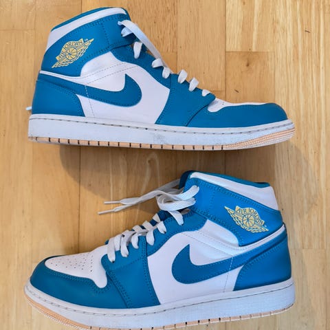 Selger et par Air Jordan 1 Mid i størrelse 42. Skoene er brukt, men fortsatt i god stand. Litt slitasje her og der, men ingen store – fortsatt mange gode brukstimer igjen!