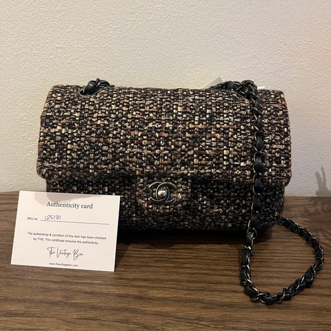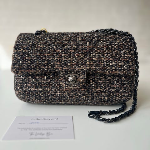 Sjelden Vintage Chanel medium tweed flap bag i sort.