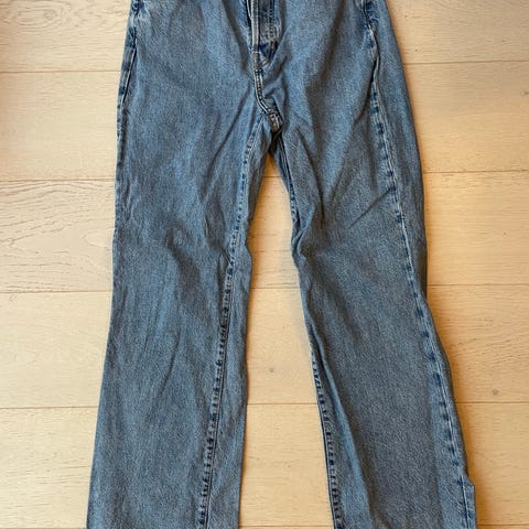 Pent brukt never denim wide high jean fra bikbok selges. (Bilder lånt fra nettsiden for å vise på) Str. 33, lengde 32. Selges for 175kr. Kan sendes mot at kjøper betaler frakt.