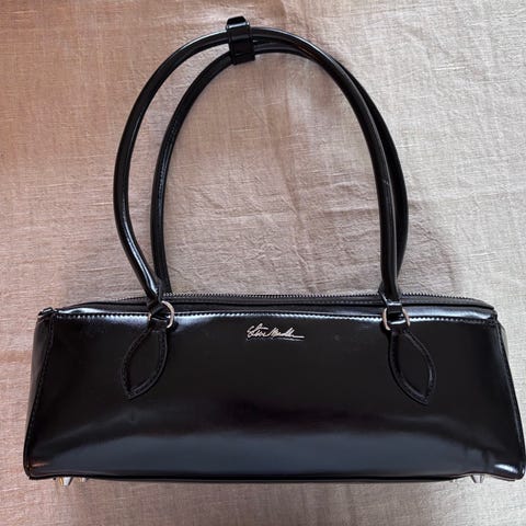 Spesiell clutch med originale remmer (splittet i to). Sort. Vintage fra 50-tallet.