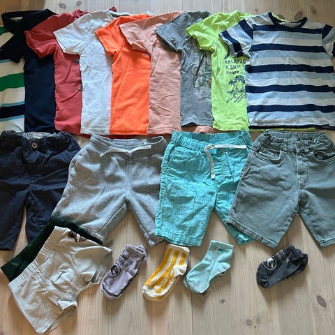 Merkeklær som GANT, Tommy Hilfiger og Ralph Lauren. Jeg er usikker på om Lacoste pique og Armani T-skjorte er ekte siden de er fått i gave. Klærne er hele og fine, noe mer brukt enn annet. Joggedressen er feilfri.