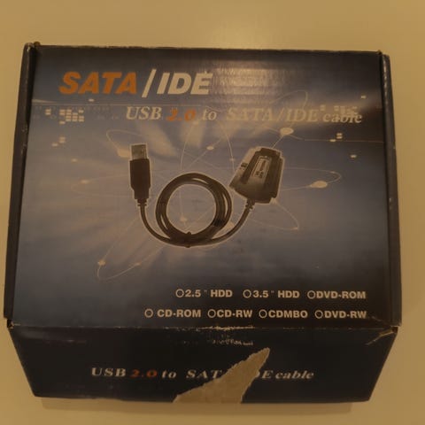 Selger en robust USB 2.0 til IDE-adapter med ekstern strømforsyning – perfekt for IDE/PATA-harddisker (2,5″ og 3,5″) og optiske enheter (CD/DVD). Plug-and-play via USB A‑kontakt. Inkluderer strømforsyning med 5 V og 12V utgang for å drive eldre disker.