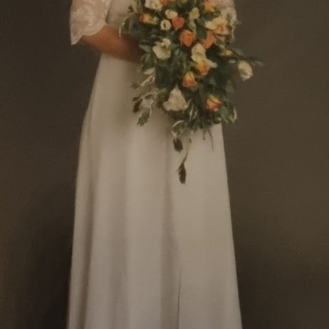 Elfenbensfarvet brudekjole. Brukt en gang og som ny