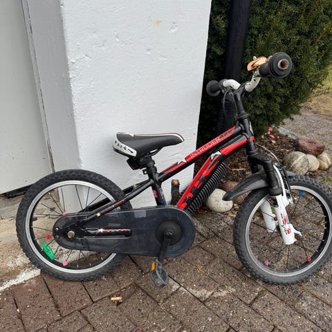 Alt i alt en god sykkel, den kan brukes av et annet barn. Du må absolutt kjøpe sykkelhåndtak, pluss muligens annet tilbehør som ringeklokke eller reflekser. Hjulstørrelse 16 tommer.