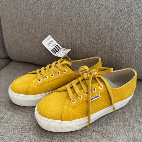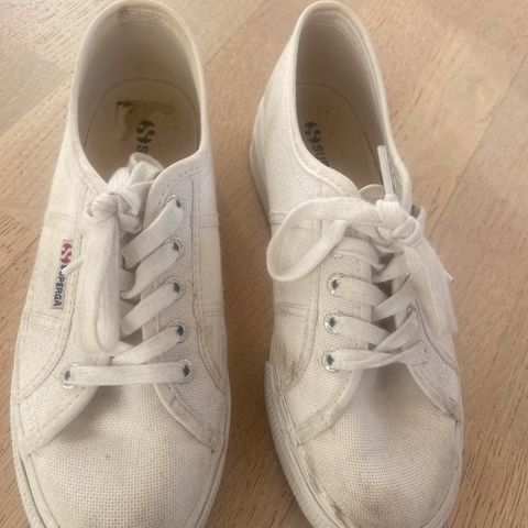 Superga sko i størrelse 38. Svært lite brukt så de er i fin stand. Høy plattform/såle og semsket skinn
