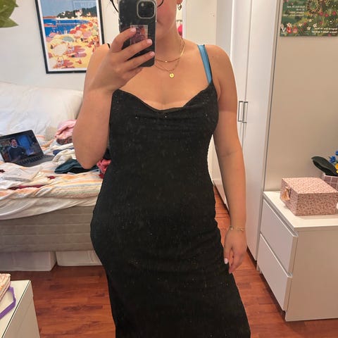 Minimalt brukt kjole fra Paranoia selges, kr 350,- Sort bunnfarge med hvite prikker, halterneck med knyting rundt halsen og dyp utringning i ryggen med pyntehjerte nederst i «v-en», 2 splitter foran i kjoleskjørtet. En veldig spesiell og feminin kjole du garantert ikke kommer til å møte andre i.