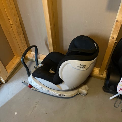 Britax two way leies ut med kile og forankringsseler. Dette er en veldig fin stol å ha med på reise, da den er lett å ta med og enkel å montere i de fleste biler. Har ikke hodeputen, men den er ikke nødvendig.