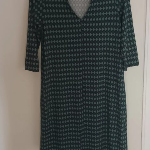 Grønn kjole m 2 lommer, 50% lin, pent brukt, str S