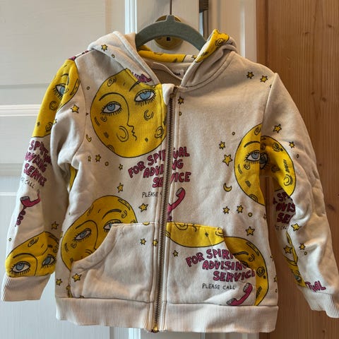 Deilig og myk hettejakke med morsomt motiv. Lysegrønn
