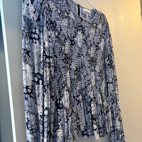 Ganni Marietta Georgette str 34. 100% viskose. Lett og behagelig skjorte som styler opp antrekket. Noen bruksmerker, se bilde.