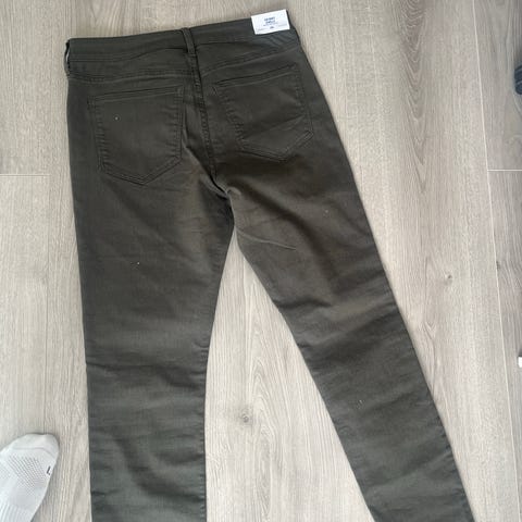 Buksen er laget i et stretchy materiale som sitter fint på kroppen og har en dyp olivengrønn farge.