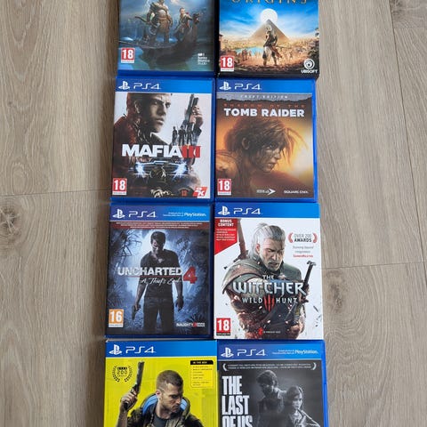 Alle spillene er i god stand, kommer i original PS4-cover, men bare death stranding er plastpakket.
