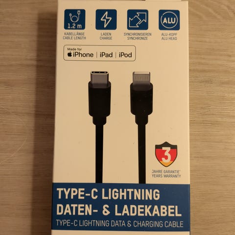 Tekstilkledd kabel for lading eller synkronisering. Kobles til datamaskin eller nettadapter. Passer Apple-produkter med Lightning-kontakt. Apple-sertifisert.